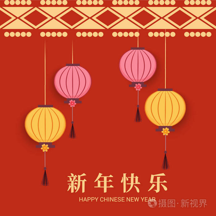 矢量插图快乐的中国新年19 汉字意味着快乐的新年 富有的生肖标志 问候卡 传单 邀请海报 小册子 横幅 插画 正版商用图片1404 摄图新视界